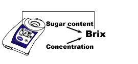 The concentration is generally indicated in percentage. 3. BrixA refractometer measures the concentration percentage and displays this as a value of Brix(%).