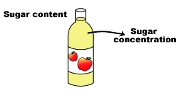 Sugar concentration can be indicated in Brix (%). Brix is a measurement scale based