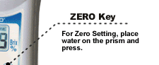 For Zero Setting, place water on the prism and press. |
