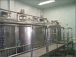 Processed juices go in tanks, and every single tank is tested for quality. Only those that meet our QC standard can go on to the next stage, sterilization.